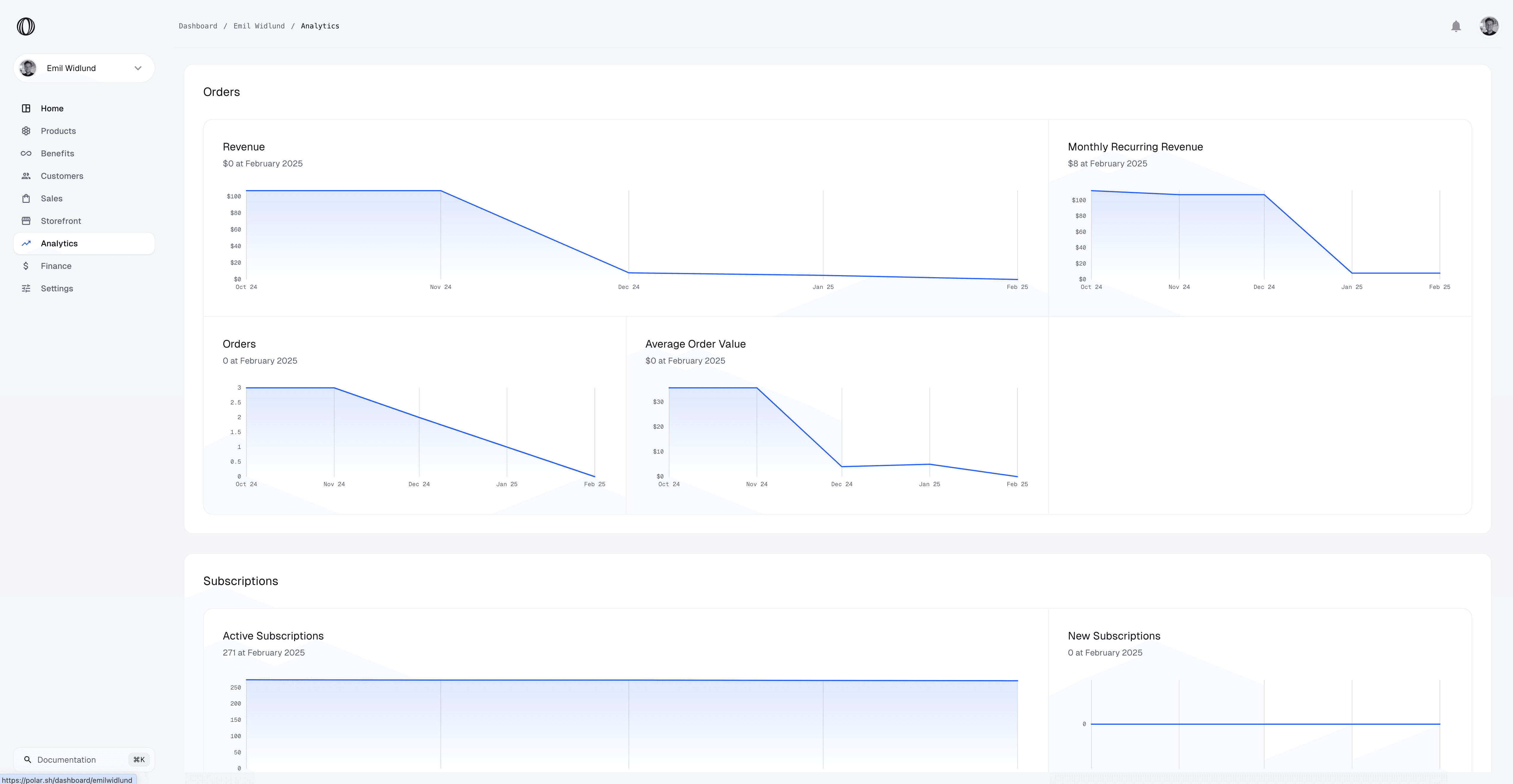 Polar offers a professional metrics dashboard out of the box. So you can stay focused on increasing revenue vs. how to measure it.