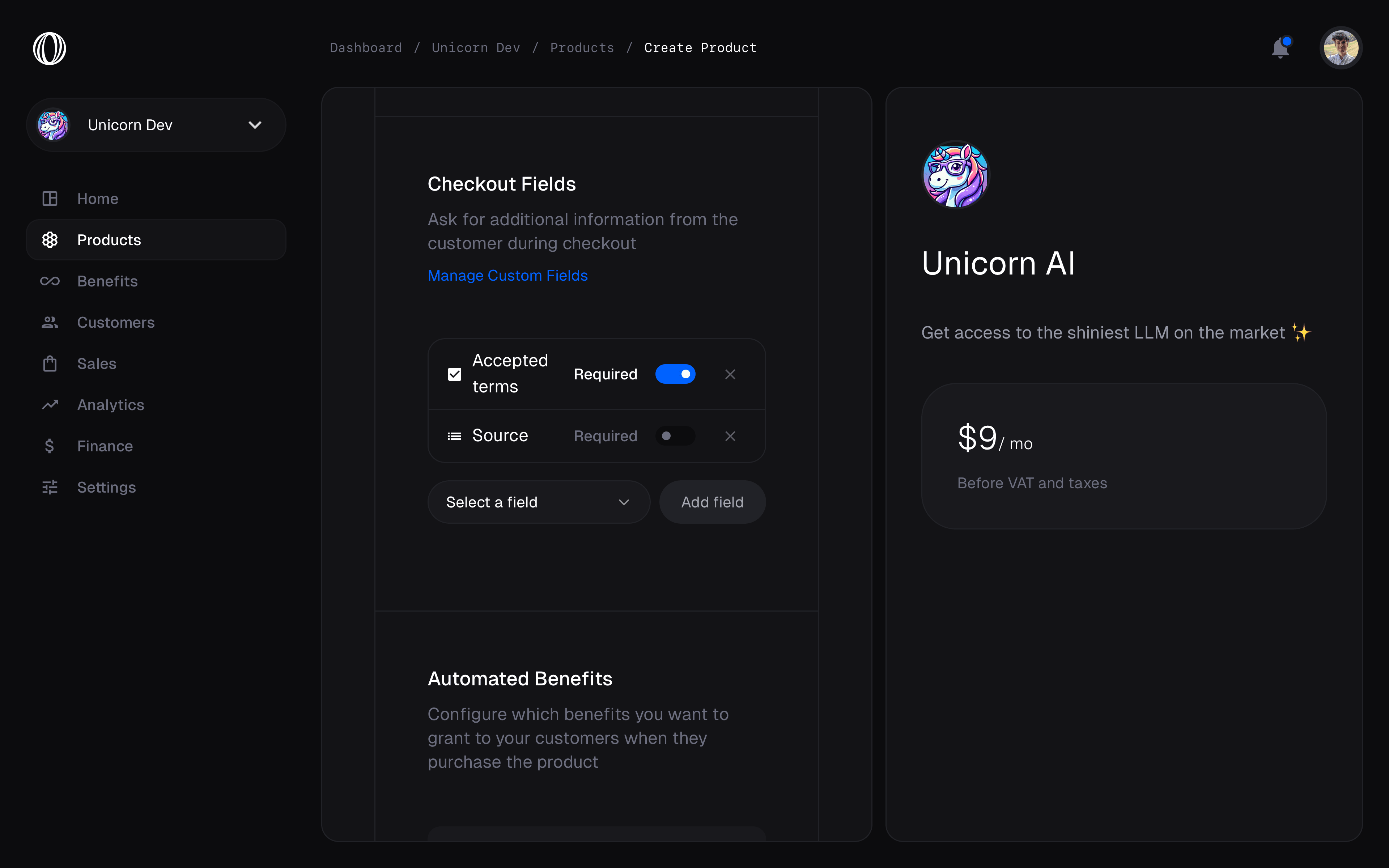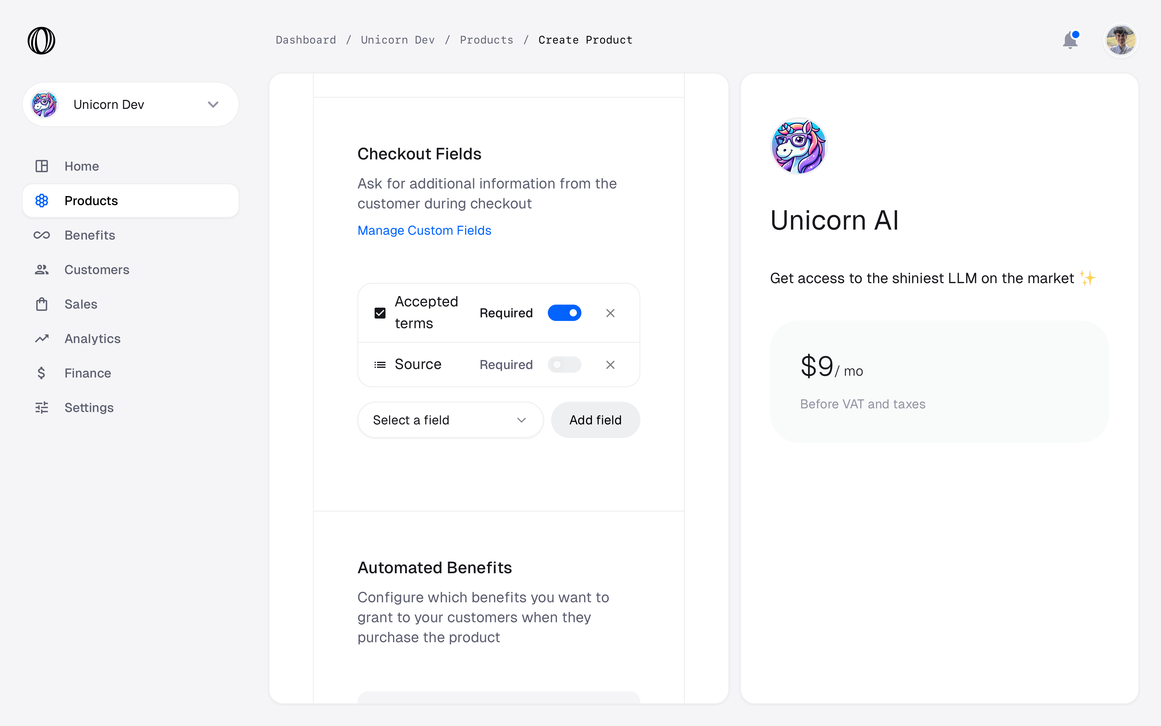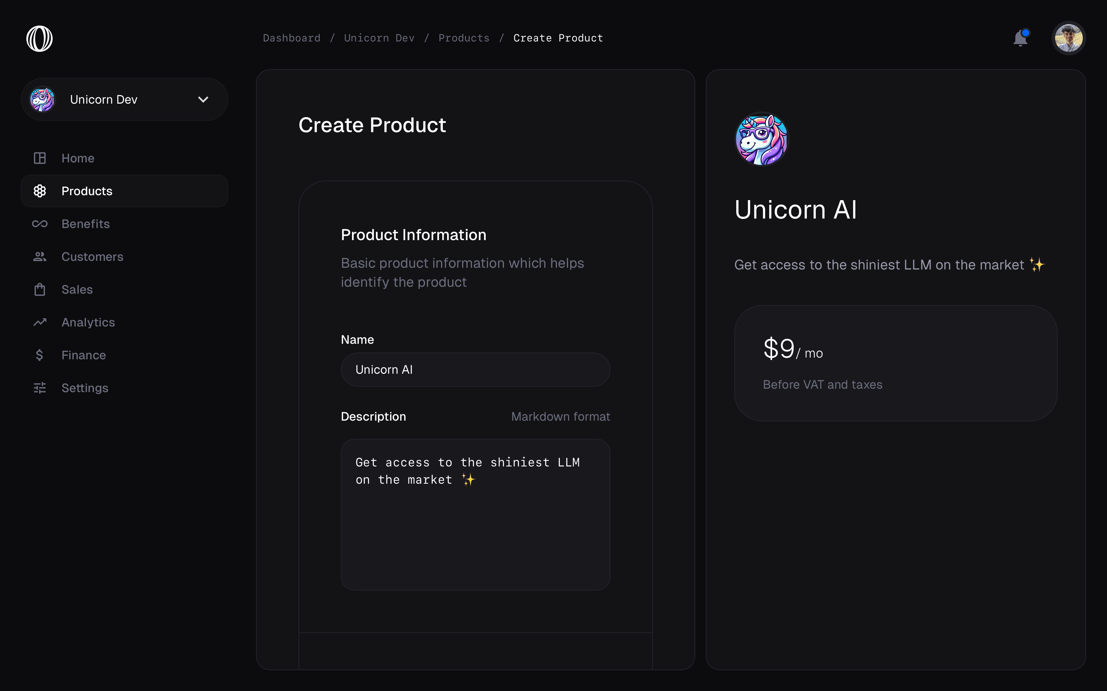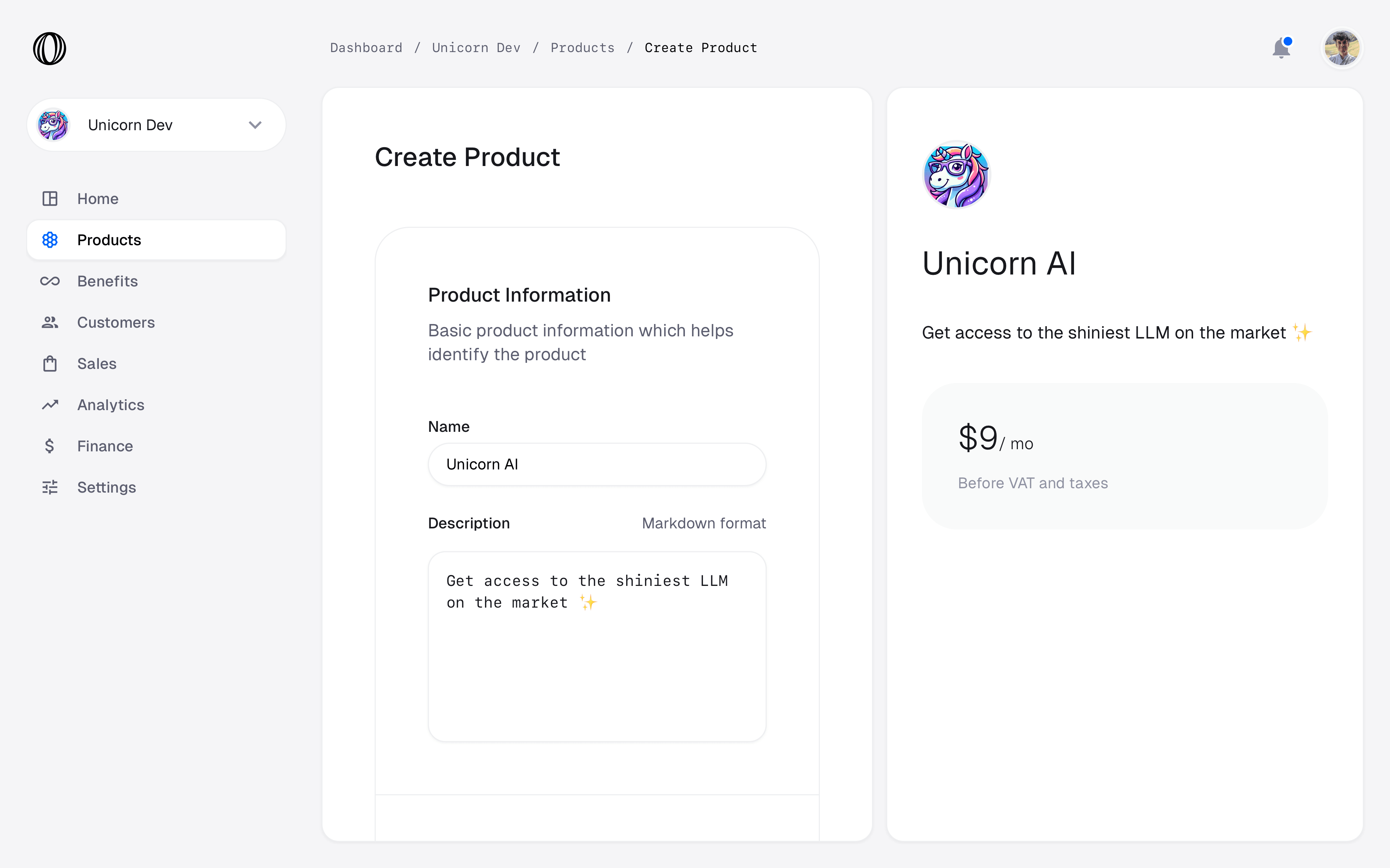 Create a product