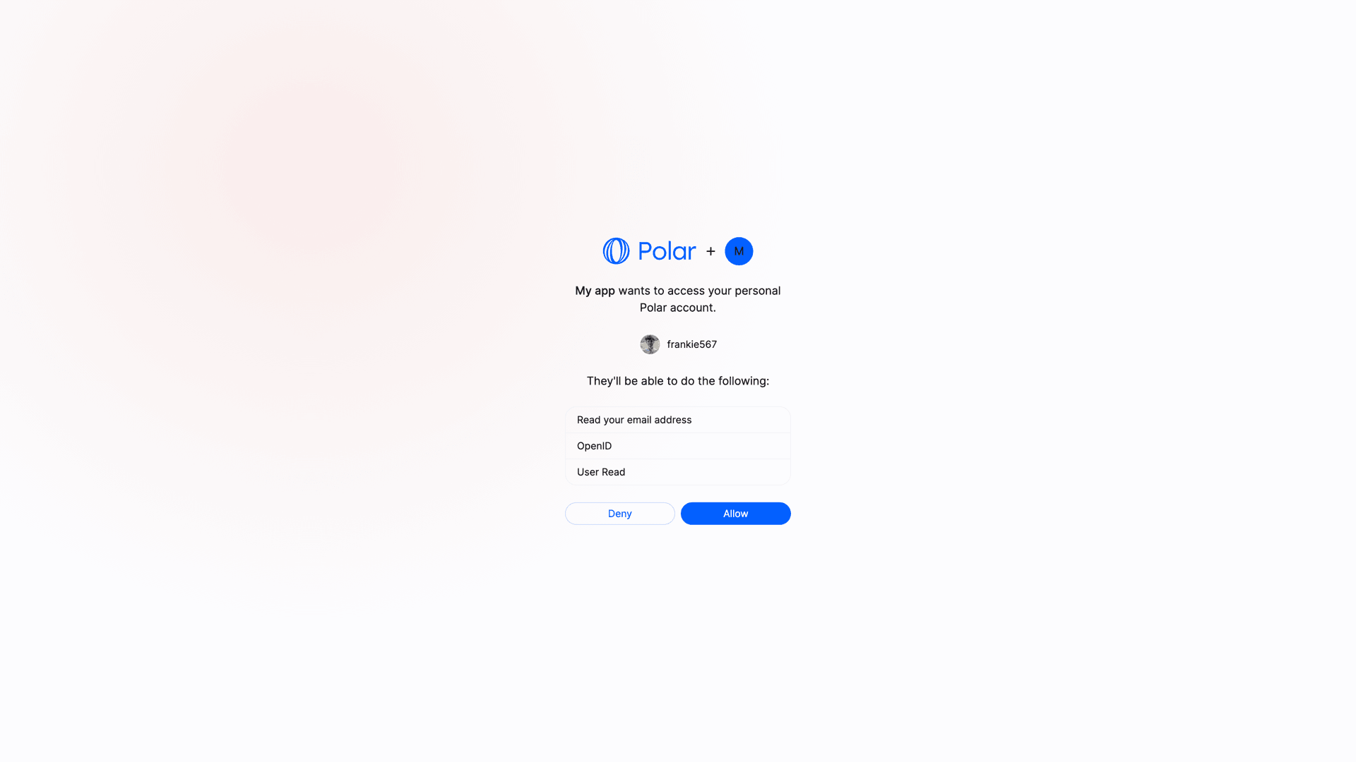 The domain to which the authorize request needs to be made is polar.sh (and not api.polar.sh).