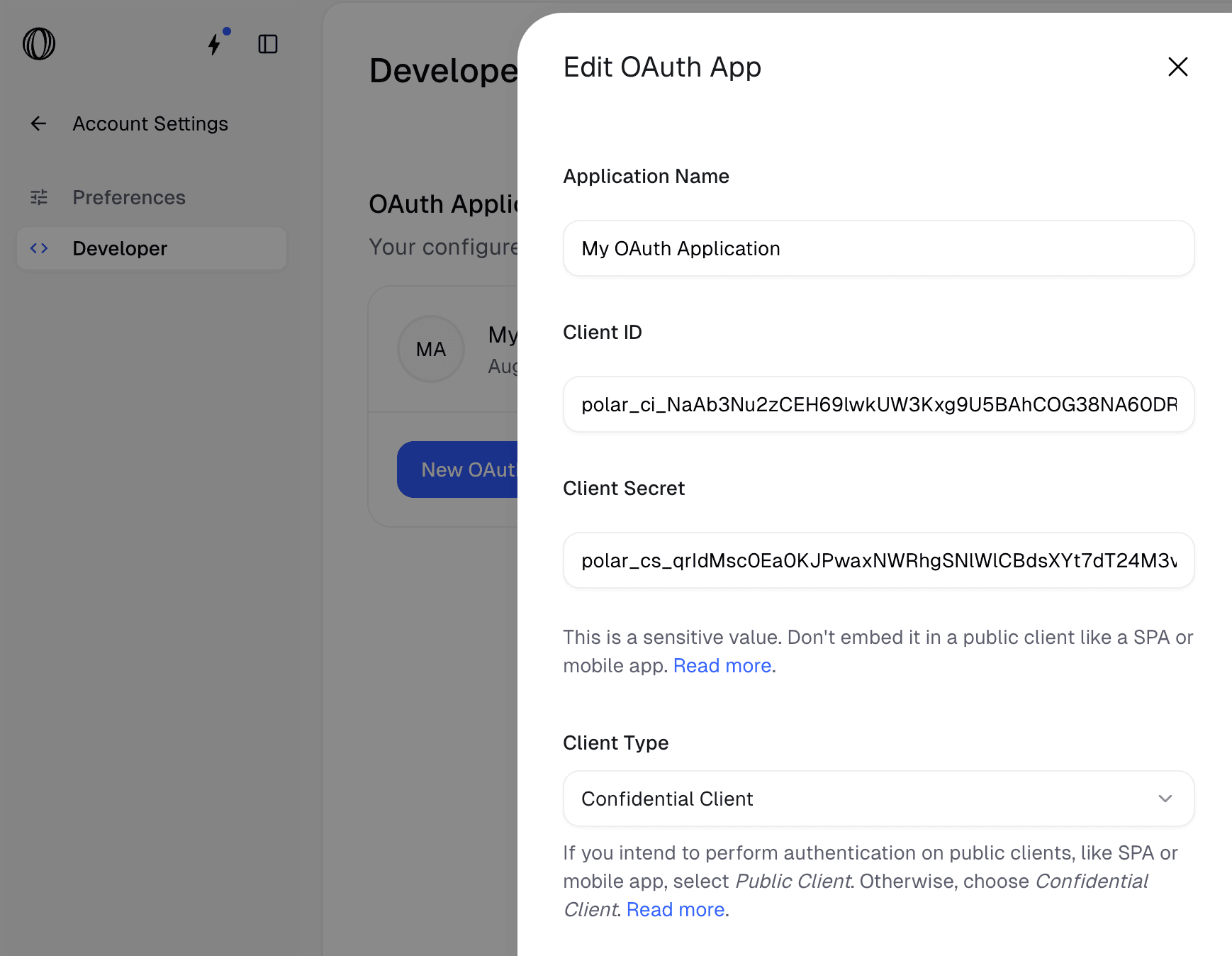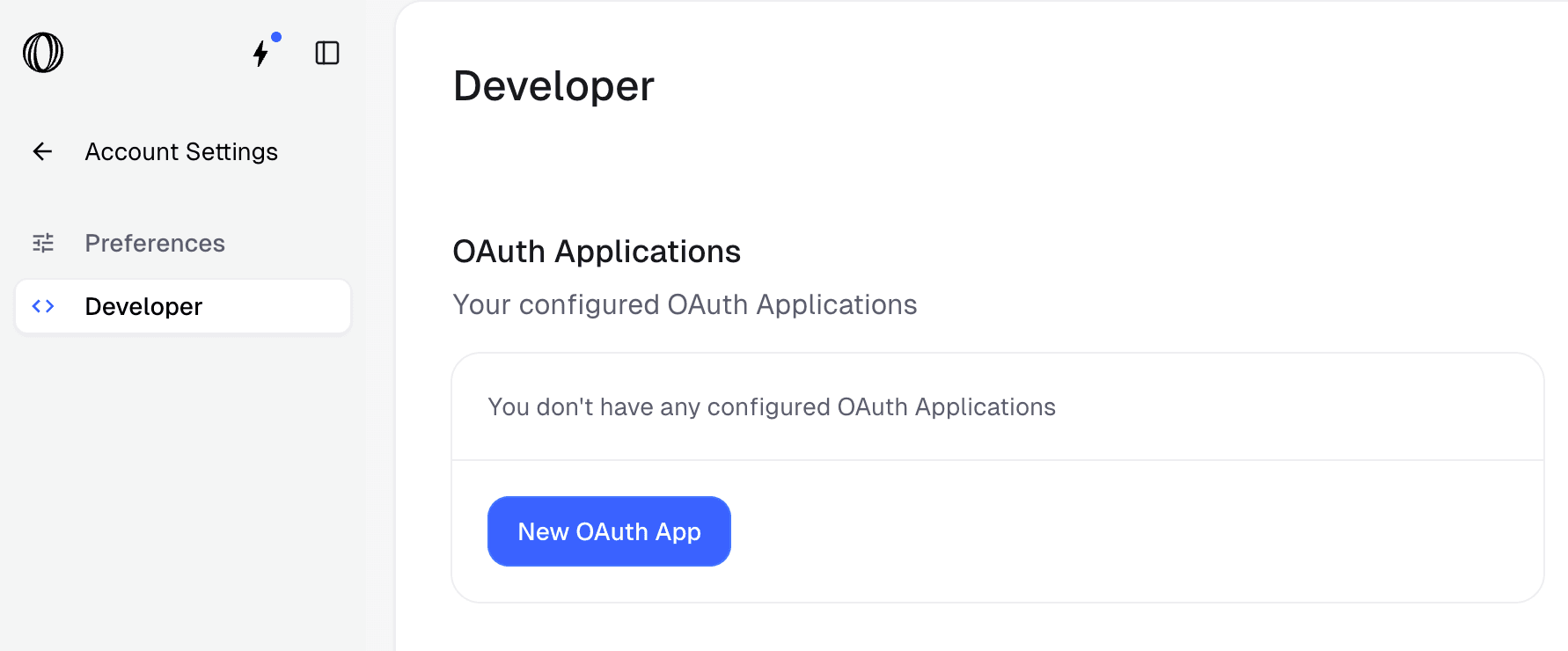 New OAuth App button to start obtaining the OAuth 2.0 client_id and client_secret values.